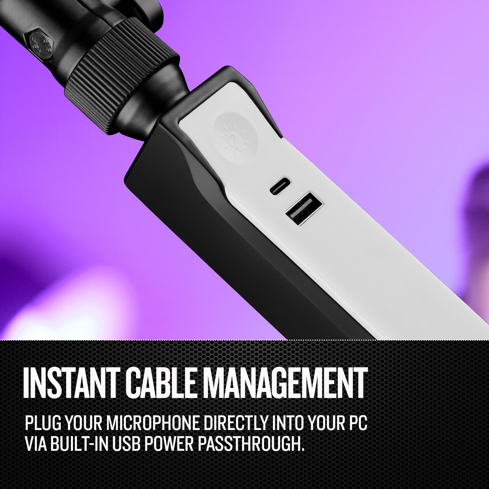 INSTANT CABLE MANAGEMENT: Built-in USB power passthrough allows creators to plug USB microphones directly into the MA-1 arm, eliminating the need for complex cable management.