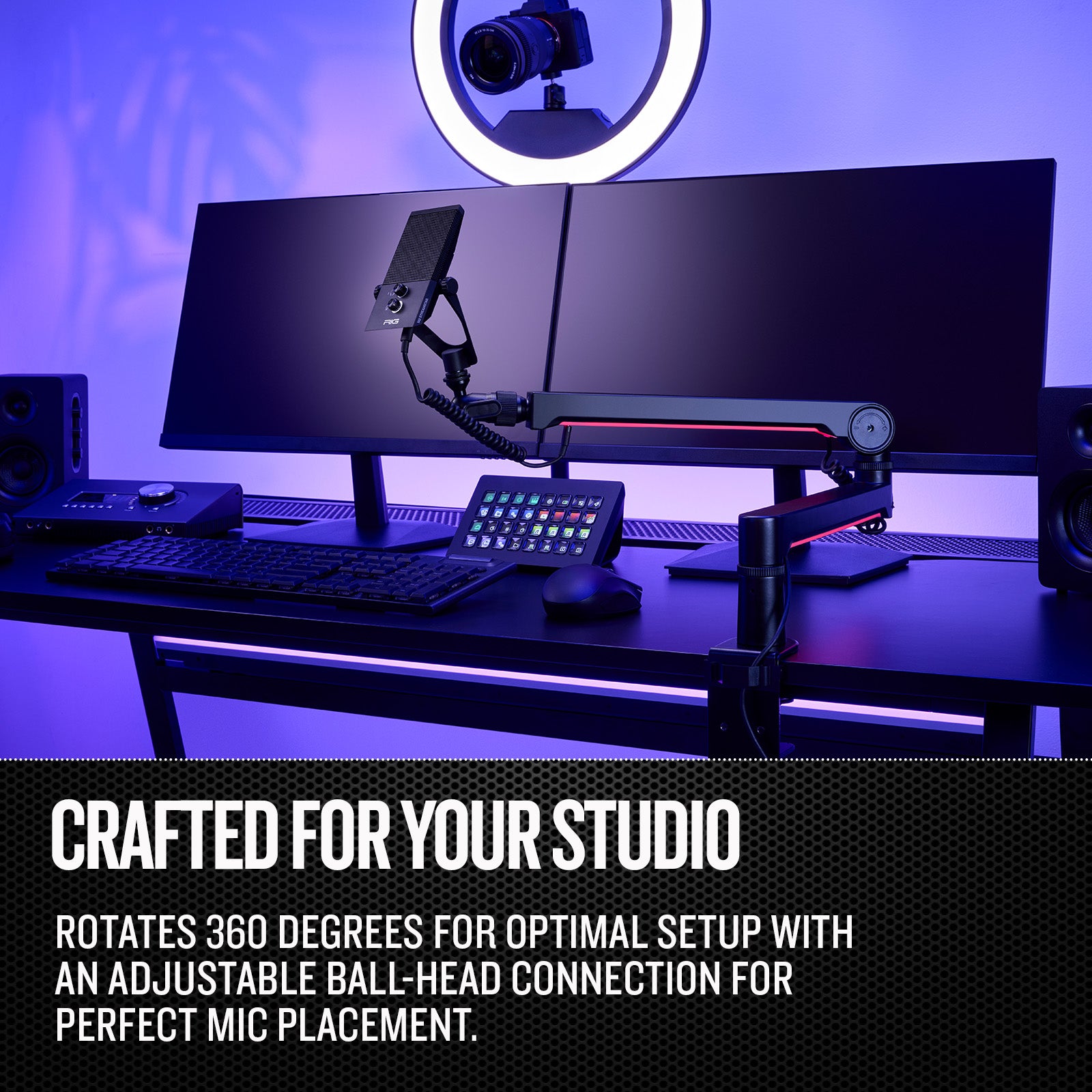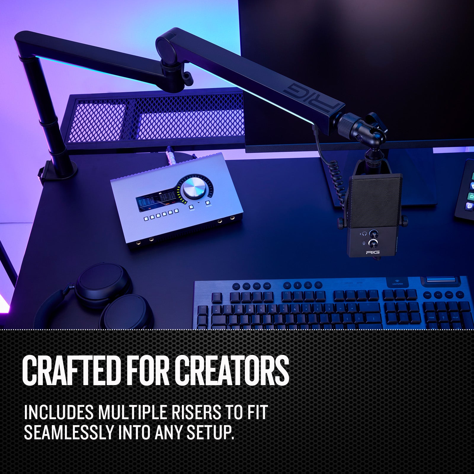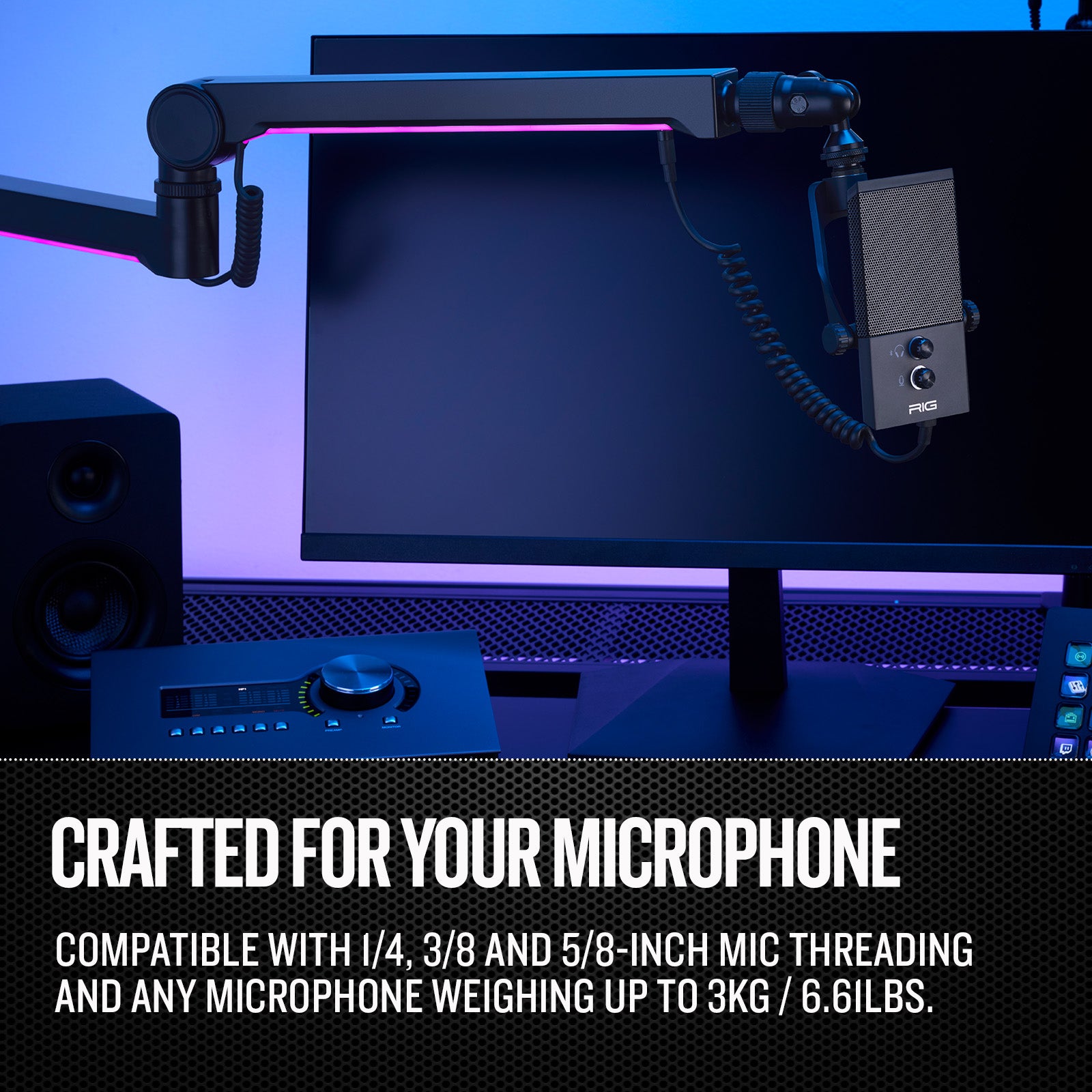 CRAFTED FOR YOUR MICROPHONE: Attach your RIG M2 STREAMSTAR microphone. MA-1 adapts to each microphone via adjustable arm tensions, ensuring your gear stays mounted securely.