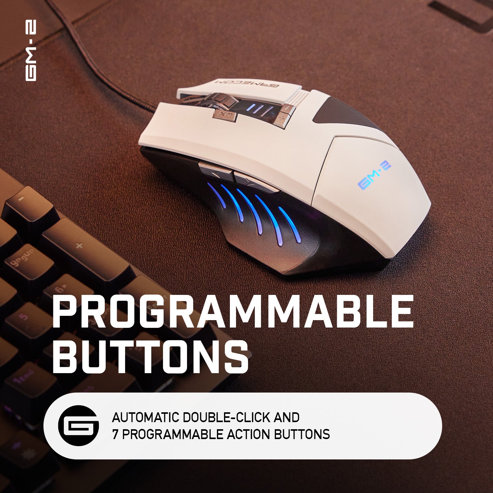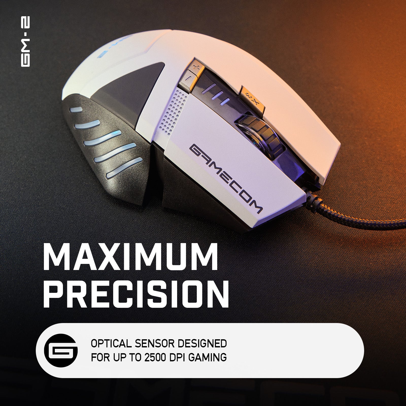 GM-2 RGB CUSTOMIZATION: Fully customizable RGB lighting via GAMECOM GM-2 Software for your choice of color options; Plus, options to remap buttons and adjust the sensitivity.
