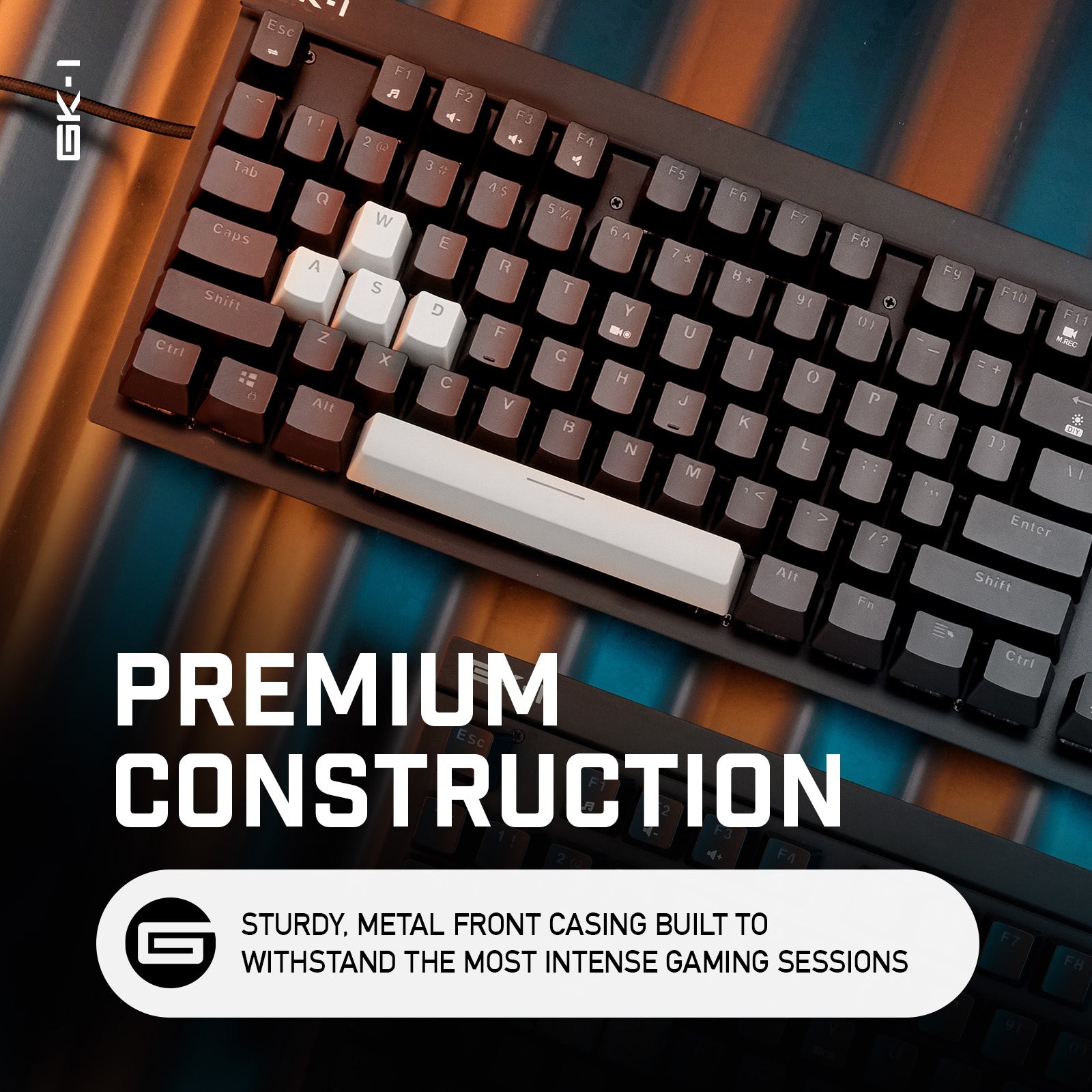 GK-1 PREMIUM CONSTRUCTION: Metal front casing reinforces a sturdy, long-lasting build to withstand the most intense gaming sessions.