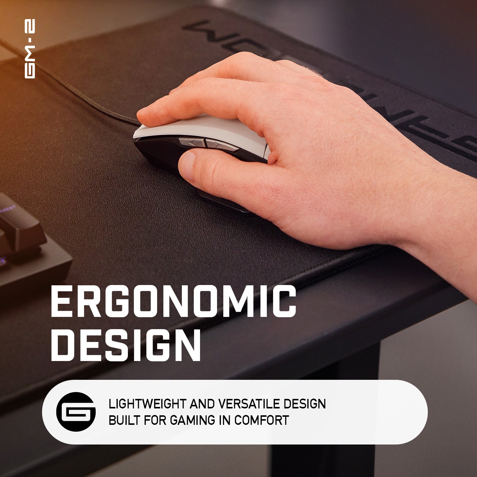 GM-2 BUILT FOR SPEED: Weight is optimally distributed creating a lightweight feel to be used for hours without fatigue; the 1.8m braided cable reduces drag for unrestricted movement; and the non-slip soft touch surface keeps your aim steady and your mouse sweat-free.